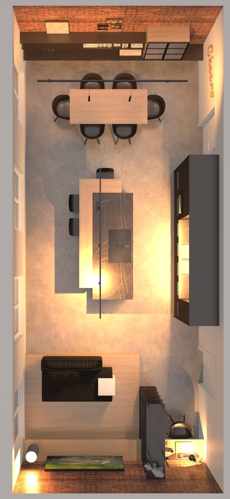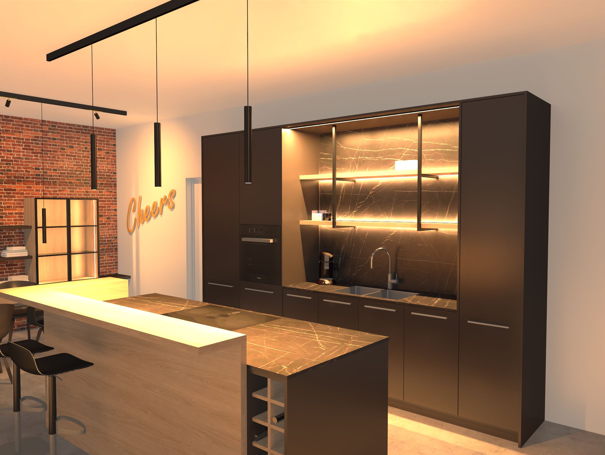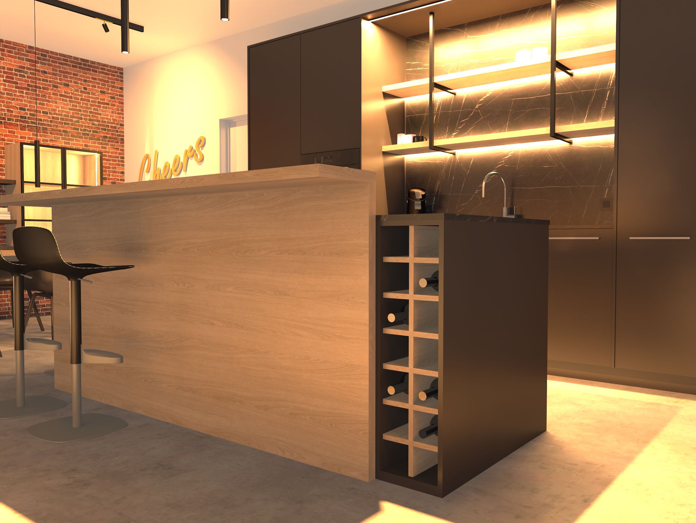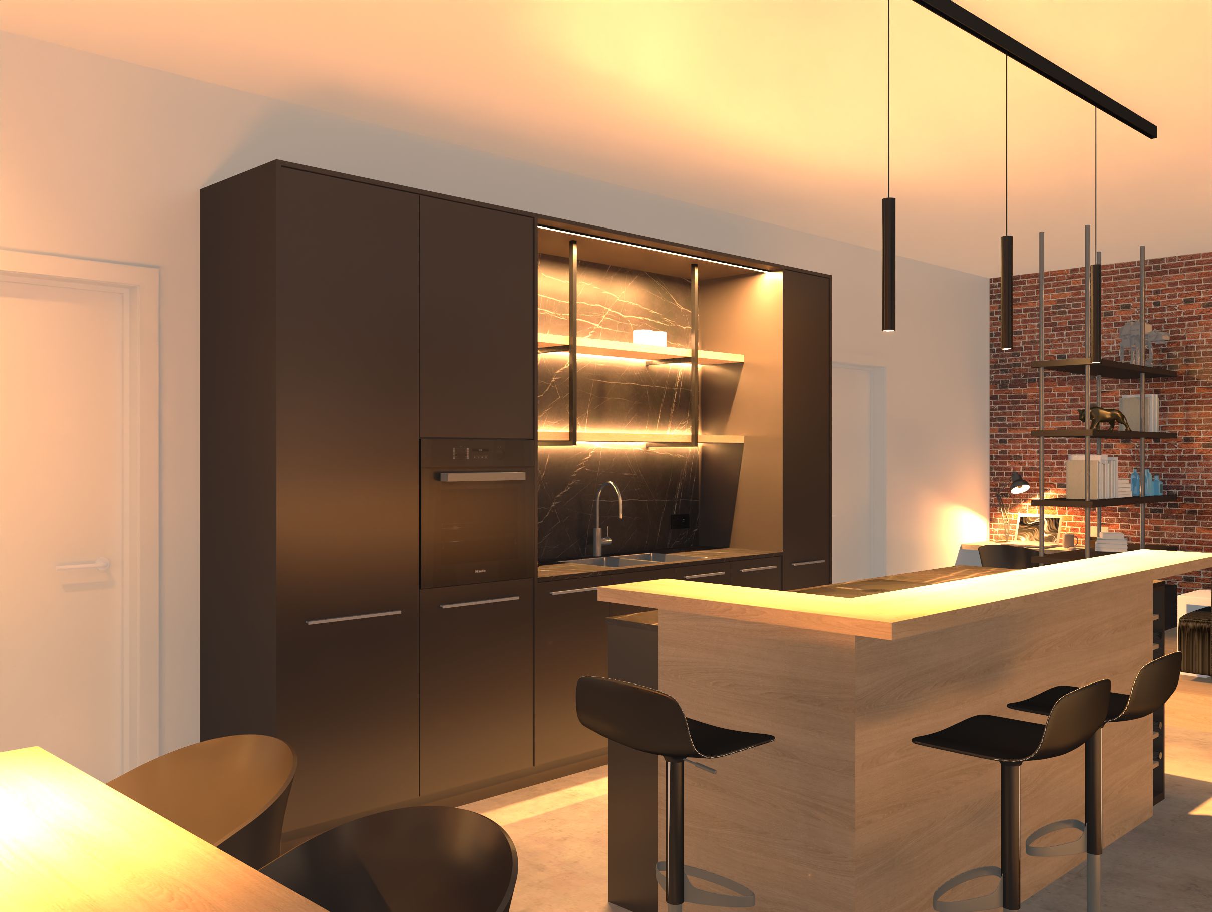 zwart, eik, ruwe baksteen.