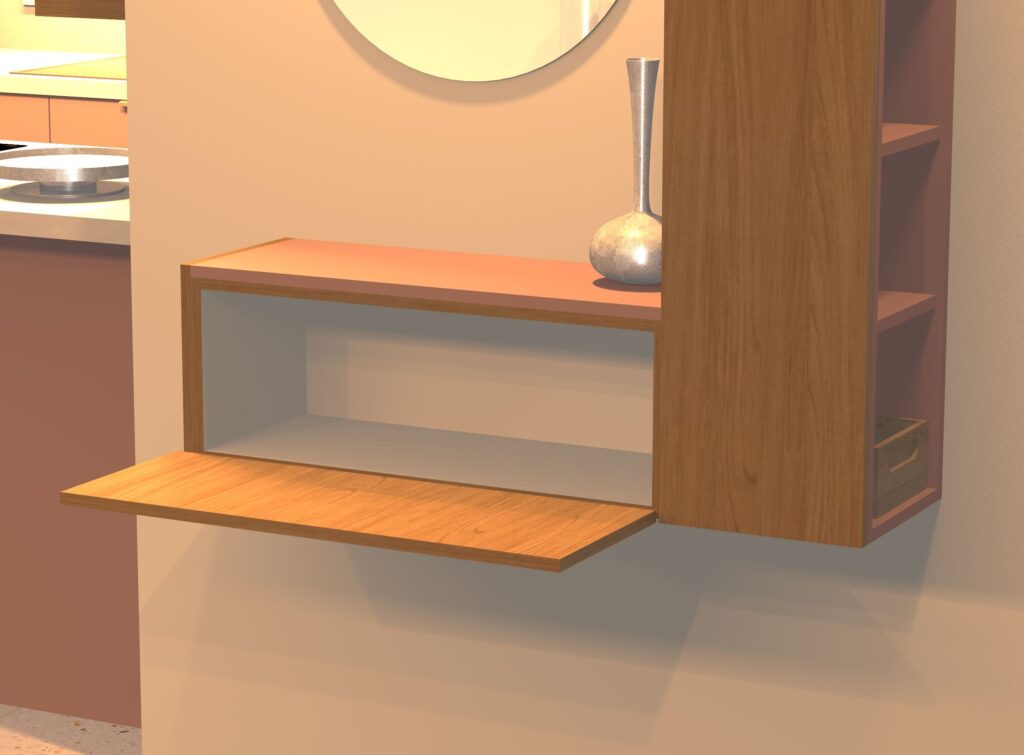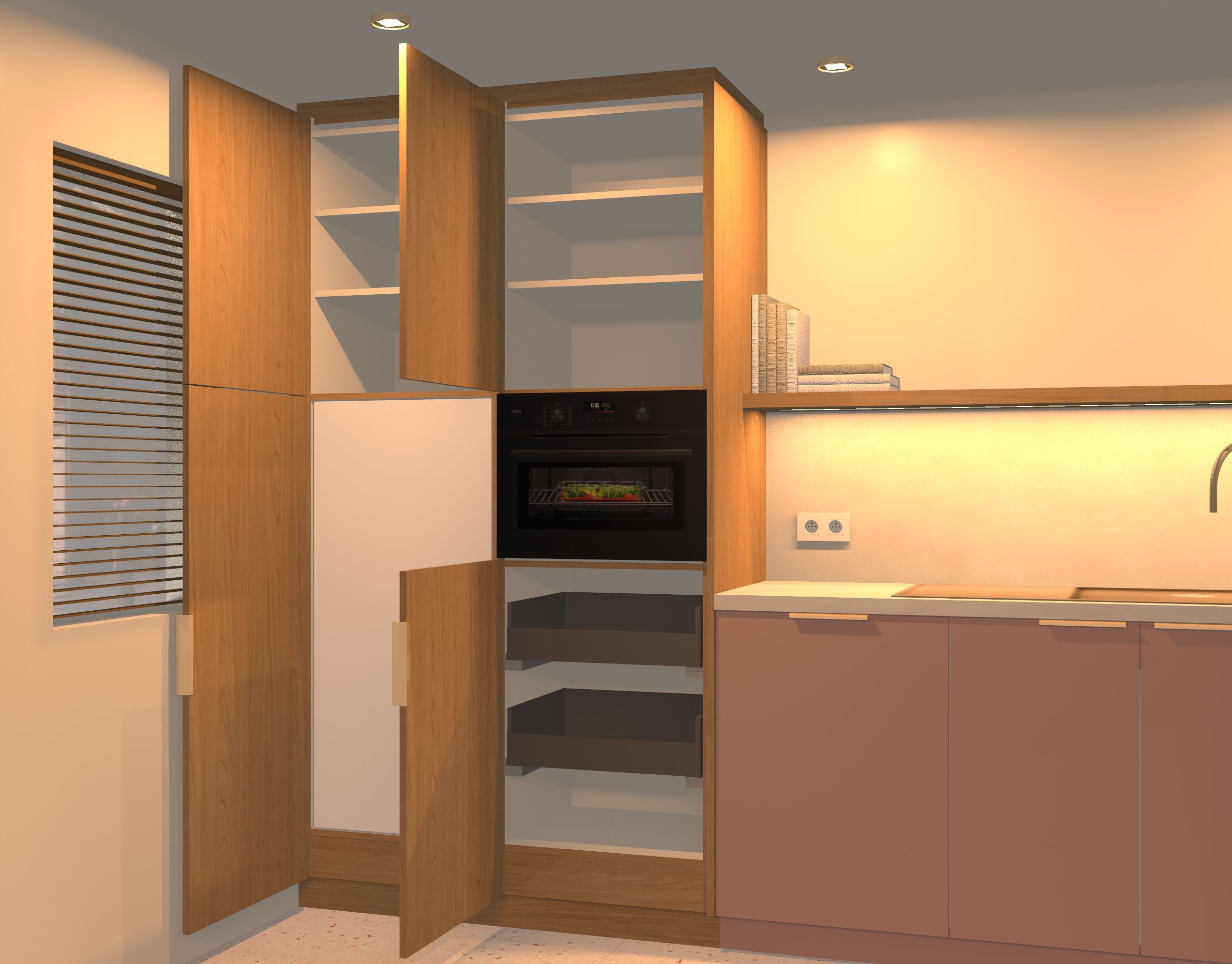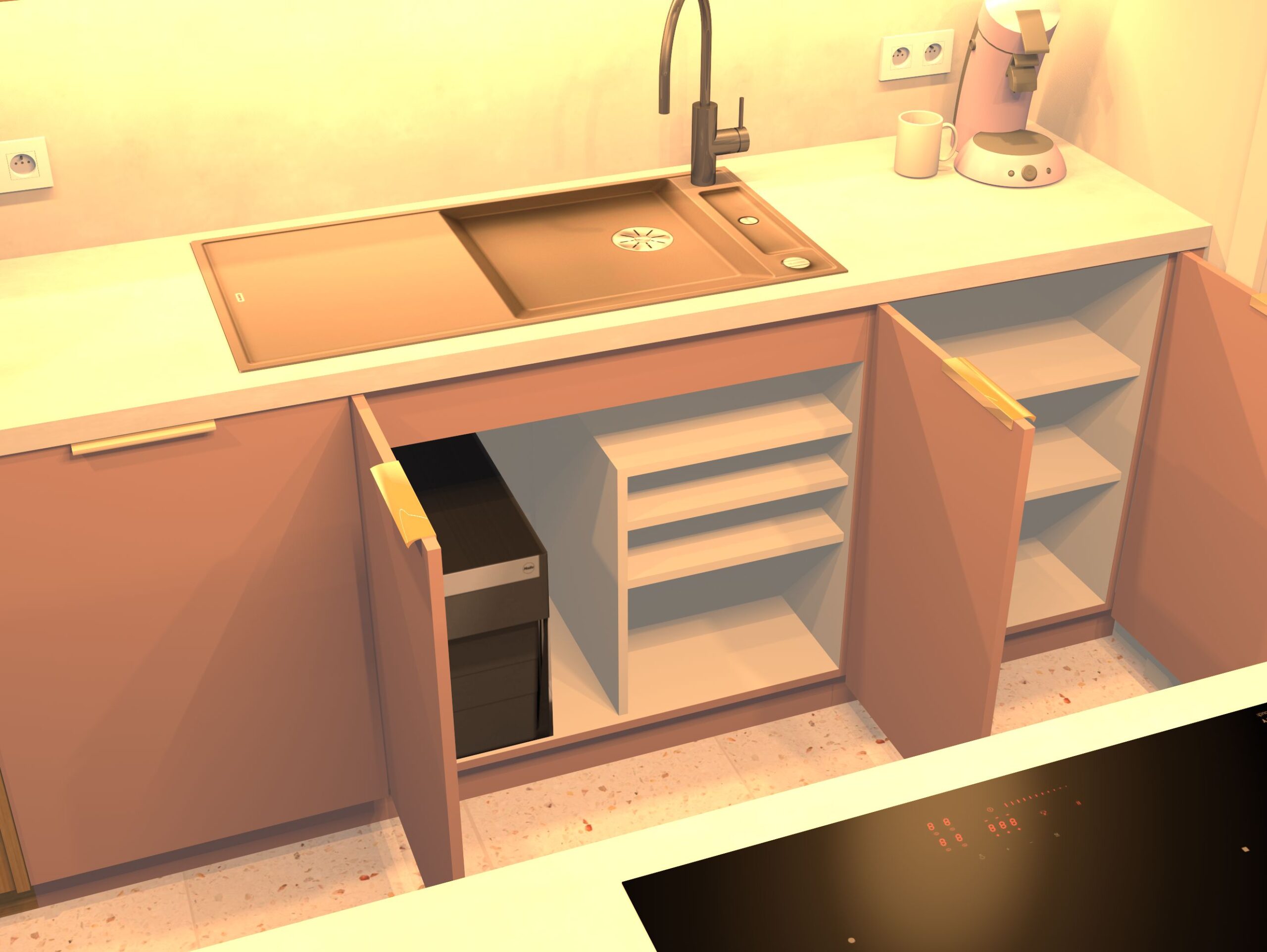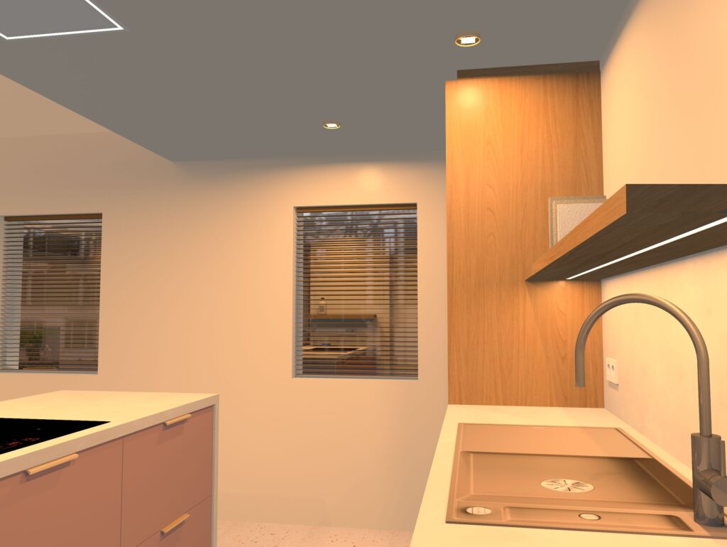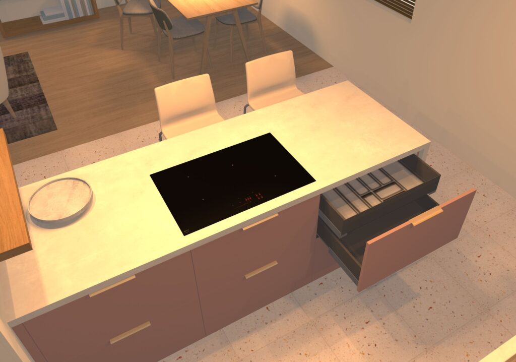 Eik, antiek roze, messing, werkblad ‘factory cream’.